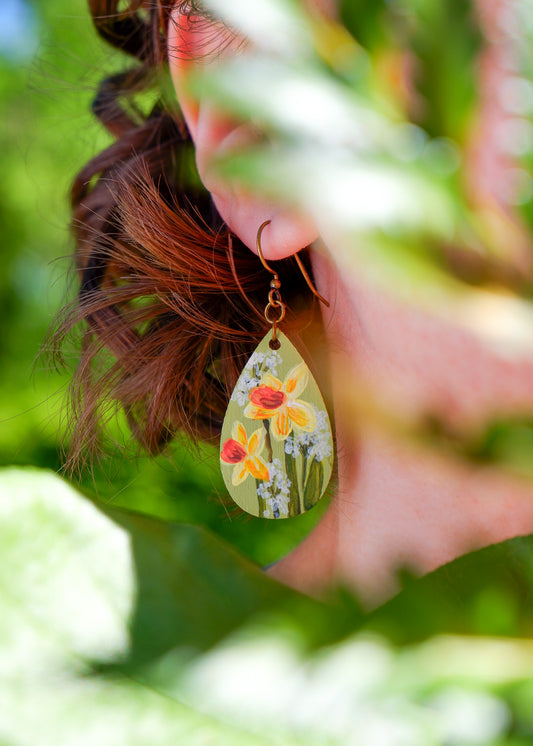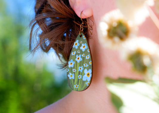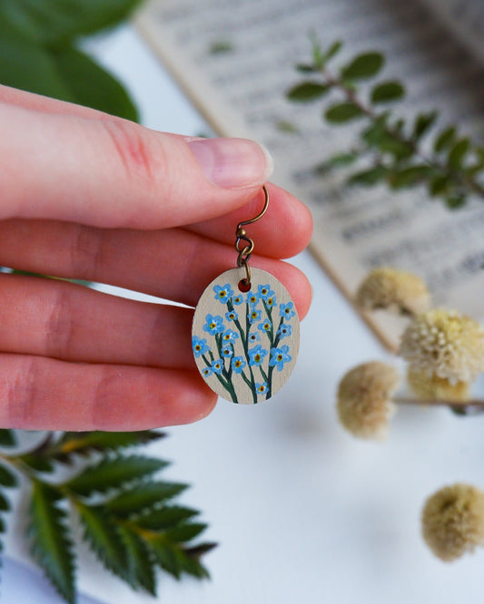 Hand-Painted Earrings - Forget-Me-Nots (Large)