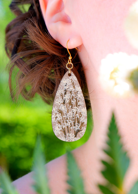 Hand-Painted Earrings - Baby's Breath (Gypsophila), White