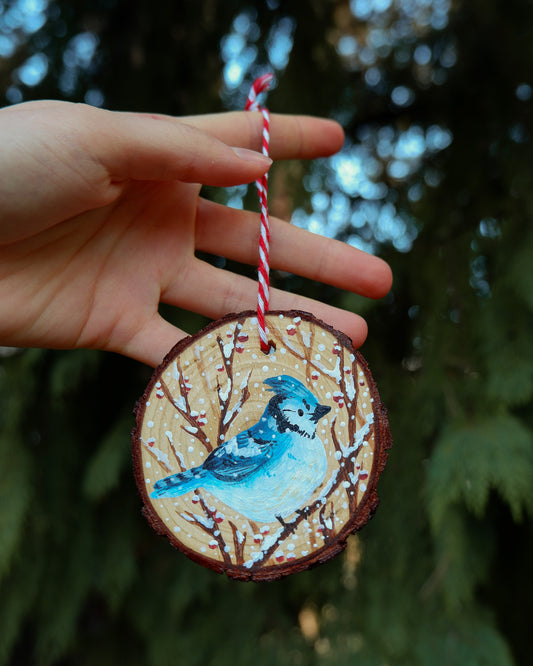 Winter Bluejay Ornament - Hand-Painted Ornament