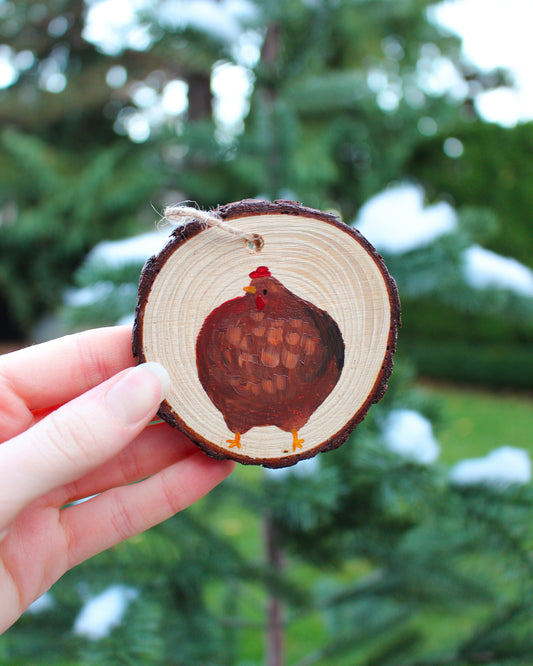 Round Chicken Ornaments - Hand-Painted Wood Ornaments