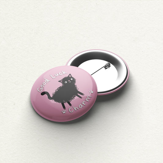 "Good Luck Charm" Black Cat Handmade Button Pin
