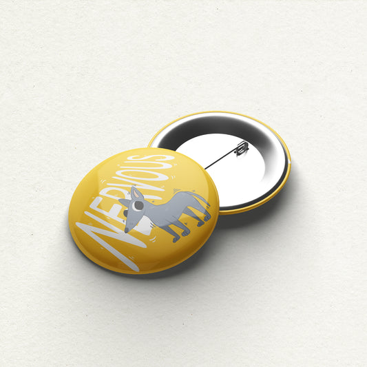 "Nervous" Caution Dog Handmade Button Pin