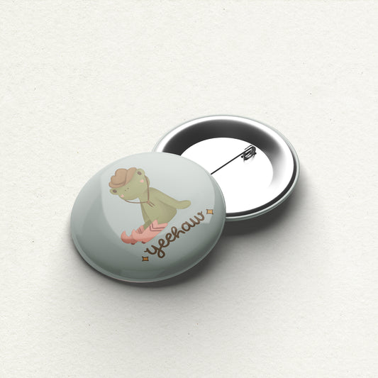 "Yeehaw" Cowboy Frog Handmade Button Pin
